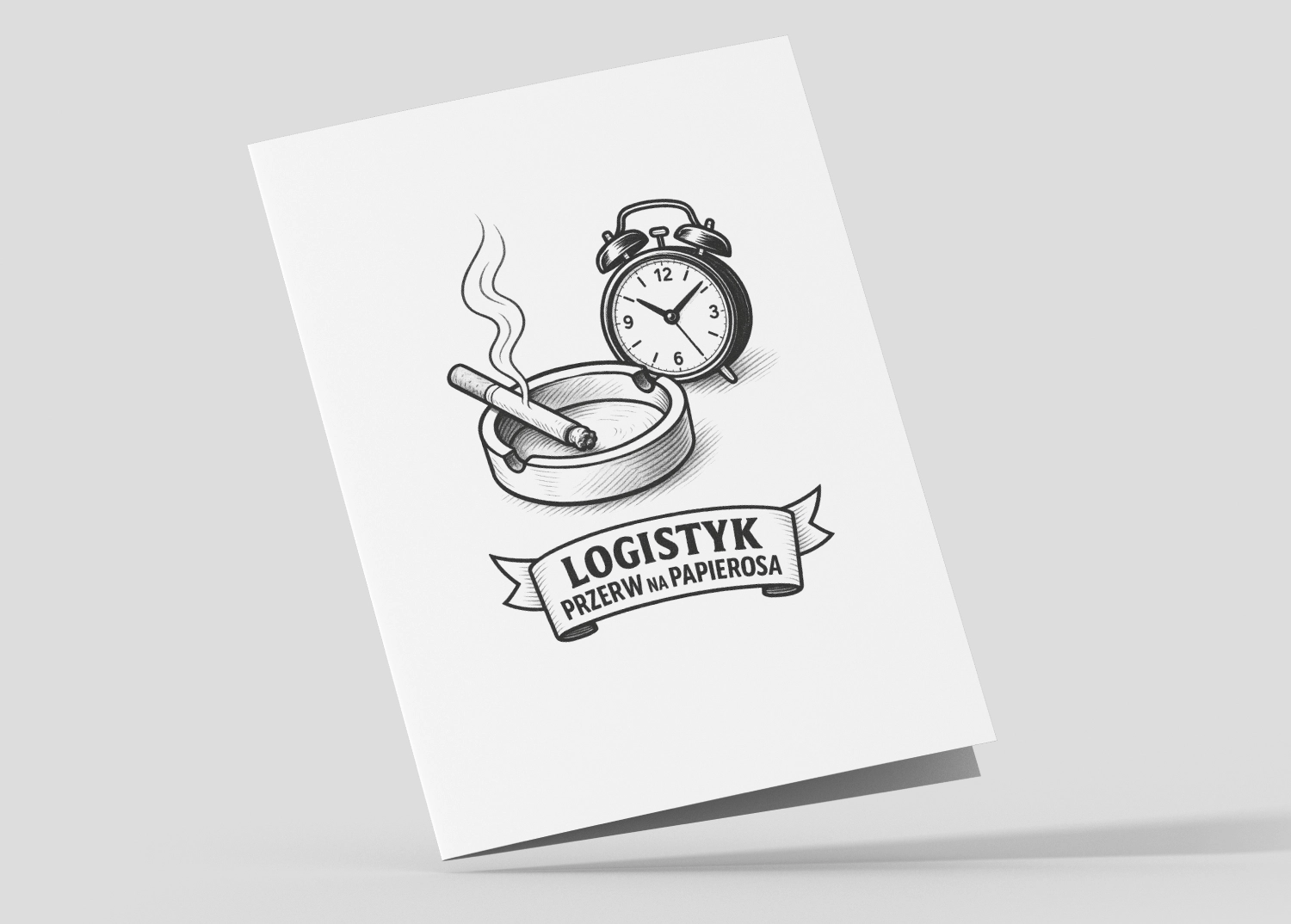 Są w pracy ludzie od projektów, są od faktur… i jest ON – nieomylny koordynator przerw na papierosa. Dzięki tej kartce wreszcie dostanie dyplom swojego powołania. Minimalistyczny rysunek z popielniczką i zegarem mówi wprost: „Twoja kariera ma sens”.