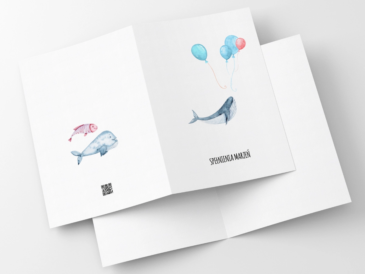 W świecie zdominowanym przez krzykliwe kolory i podziały na to, co „dla chłopca” lub „dla dziewczynki”, nasz latający wieloryb łamie wszelkie schematy – pasuje zarówno – od pierwszej kartki na roczek, przez osiemnastkę, aż po życzenia dla babci, która wciąż ma w sobie duszę marzycielki. Jest bezpiecznym wyborem – jeśli nie znasz jeszcze płci dziecka na baby shower lub szukasz prezentu dla kogoś, czyjego gustu dopiero się uczysz, ta kartka zawsze będzie „w punkt”.