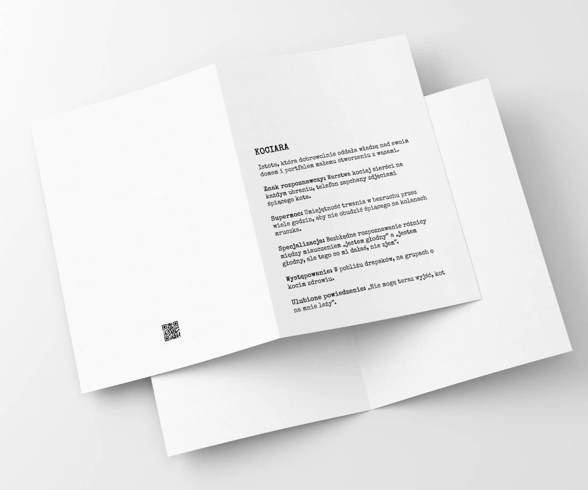 Minimalizm formy połączony z błyskotliwym tekstem na kartce sprawia, że jest to prezent, który zostanie zapamiętany na dłużej i prawdopodobnie wyląduje w ramce na ścianie lub na lodówce (zaraz obok listy zakupów, na której pierwsze miejsce zajmuje kocia karma).