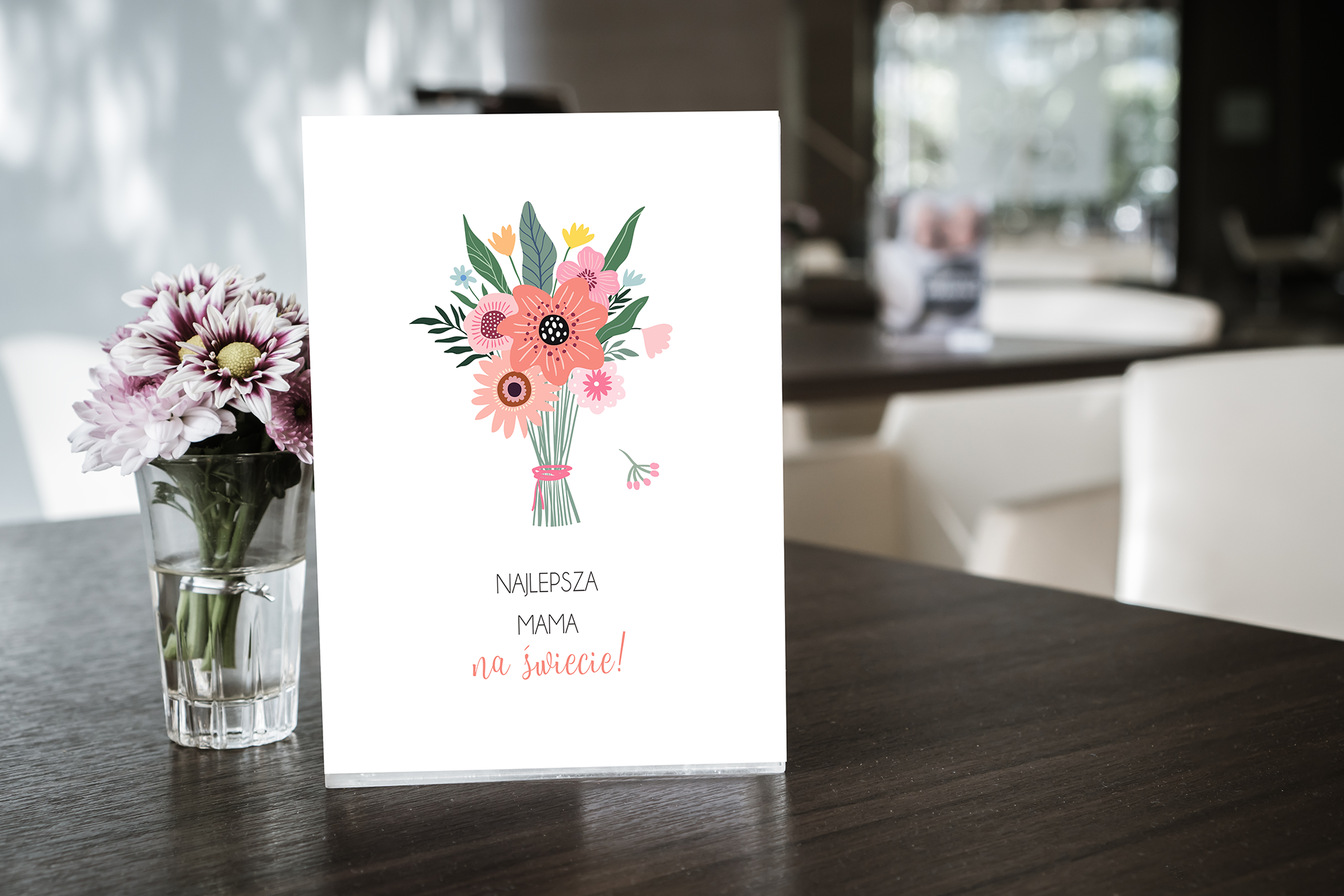 Kartka urodzinowa z bukietem kwiatów dla mamy