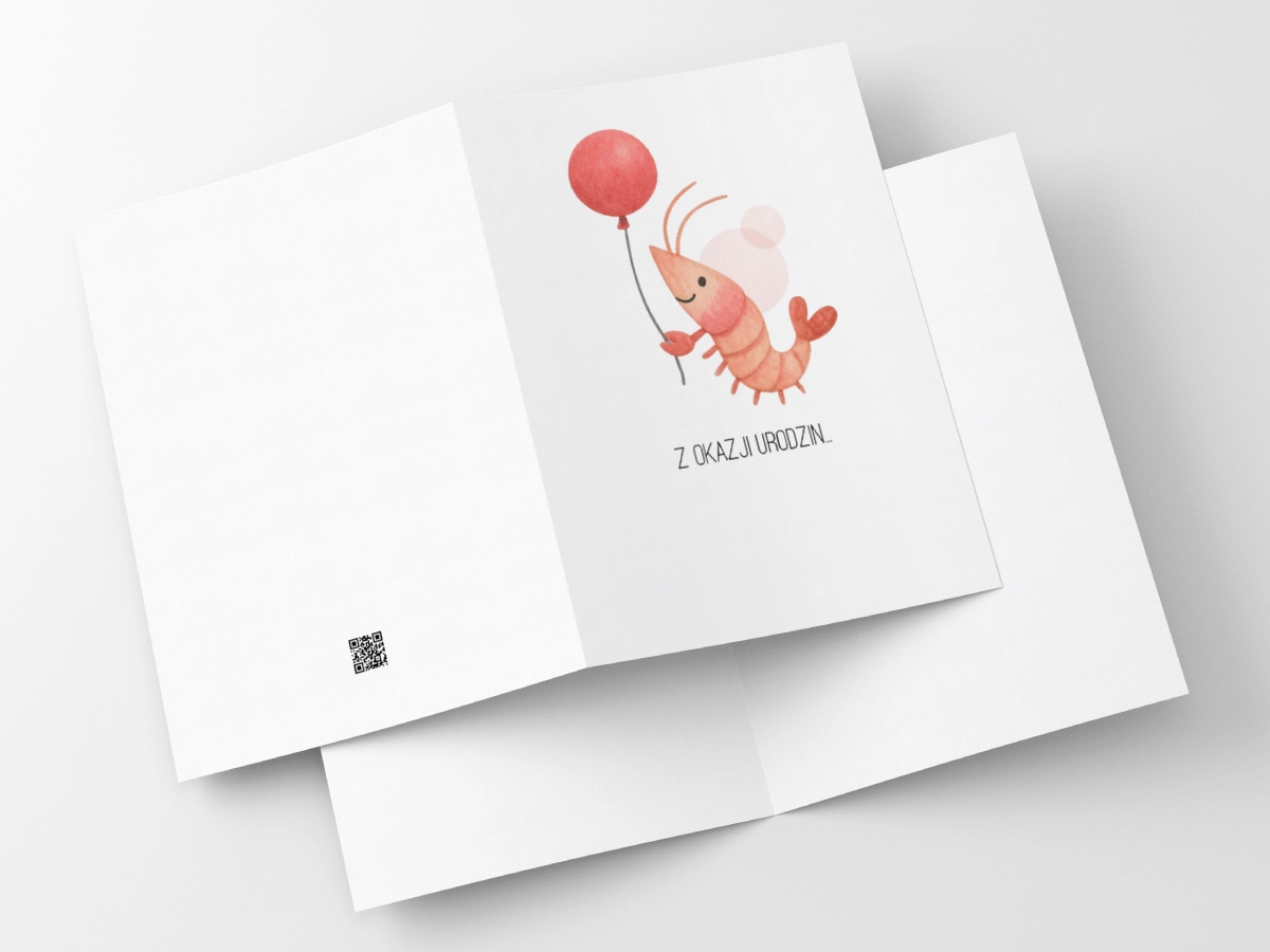 Kartka urodzinowa dla dzieci Krewetka z balonikiem
