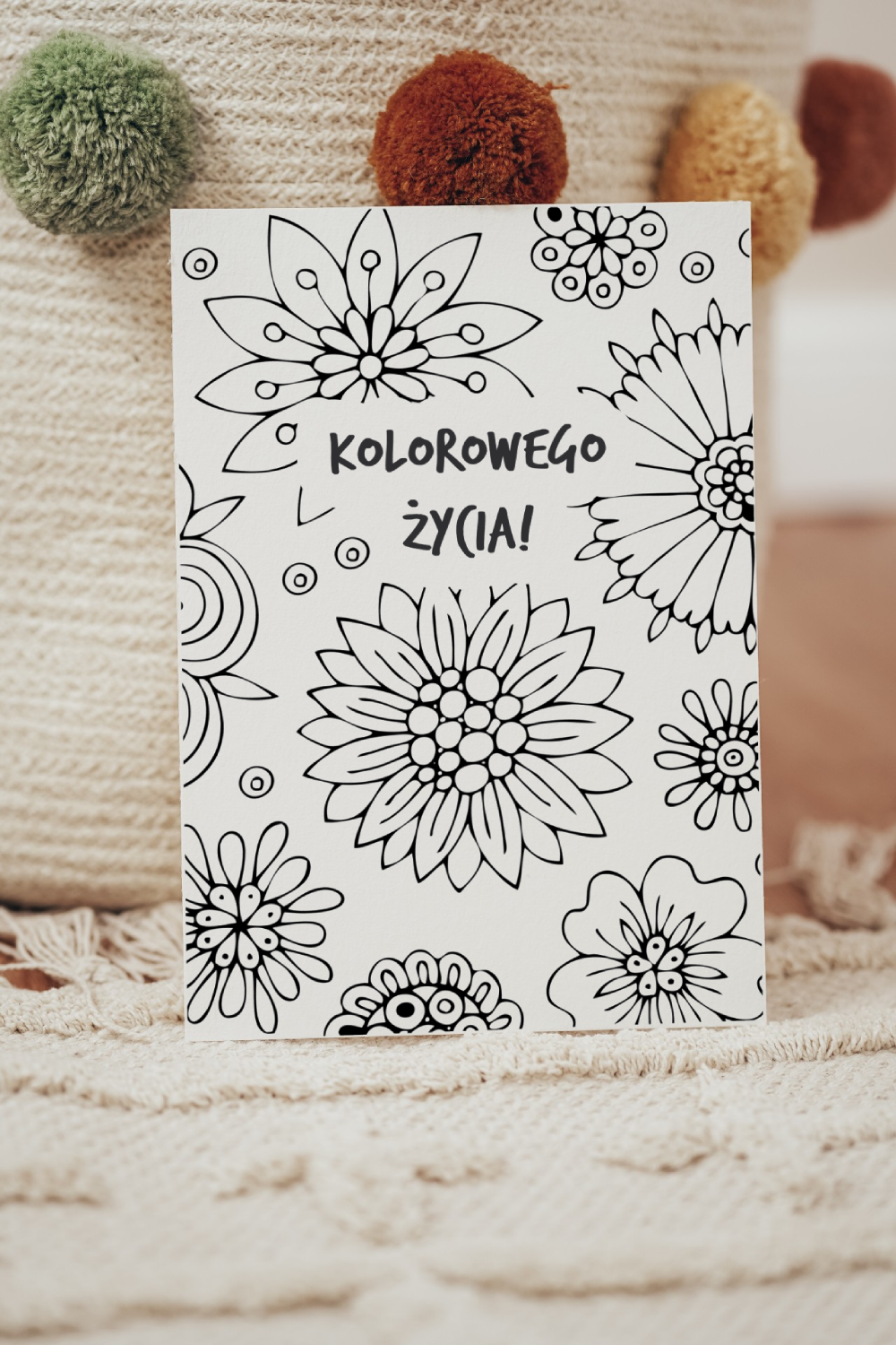 Kartka urodzinowa Kolorowanka Kwiaty – Kolorowego życia