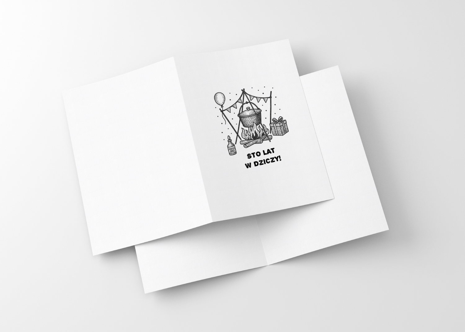 Kartka urodzinowa z ilustracją ogniska, kociołka i dzikiego biwaku przeniesie każdego obdarowanego prosto do serca leśnej przygody. To prezent, który ucieszy każdego fana bushcraftu, lasu i przygody pod gołym niebem. To kartka, która po wydruku przetrwa nawet najcięższy obóz w lesie… o ile jubilat nie postanowi podetrzeć się nią w ramach ekstremalnego testu wytrzymałości. Idealna dla tych, którzy cenią minimalizm, hamak, nóż i kubek kawy parzonej nad ogniskiem.