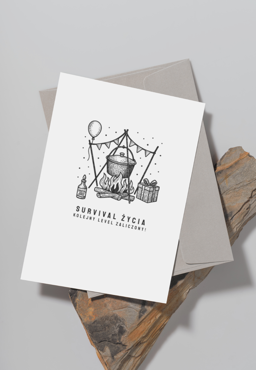 Kartka dla tych, którzy wiedzą, że życie to nie bajka, tylko survival. Czyli dla każdego, kto wie, że nie ma nic gorszego niż dym prosto w twarz. Na urodziny, które pachną ogniskiem i smakują przygodą!