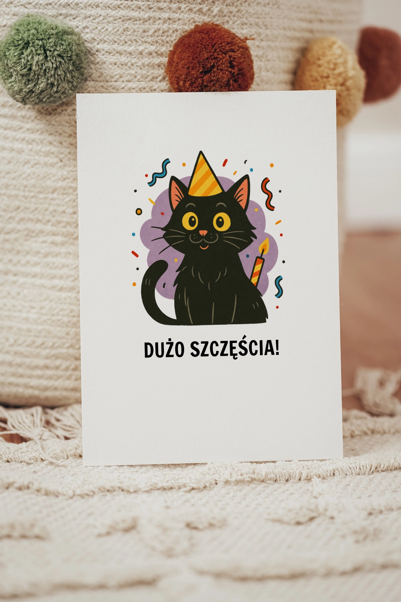 Mówi się, że czarny kot to pech. Ale ten z kartki urodzinowej udowadnia coś zupełnie innego – patrzy wprost z miną, jakby chciał powiedzieć: „relaks, człowieku, dzisiaj jest Twoje święto”. Taki koci amulet szczęścia, tyle że w papierowej wersji. Jeśli chcesz wręczyć solenizantowi kartkę, która łączy urok, humor i nutkę tajemniczości, ten kociak będzie strzałem w dziesiątkę.