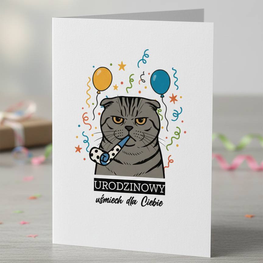 Kto ma kota, ten wie – to nie człowiek wybiera kartkę, tylko kot wybiera człowieka. I właśnie dlatego ta kartka urodzinowa to strzał w dziesiątkę dla każdego solenizanta, który żyje pod kocim dyktatem i wie, że najpiękniejszy prezent od kota to… to spojrzenie pełne miłości i wyrzutu jednocześnie.