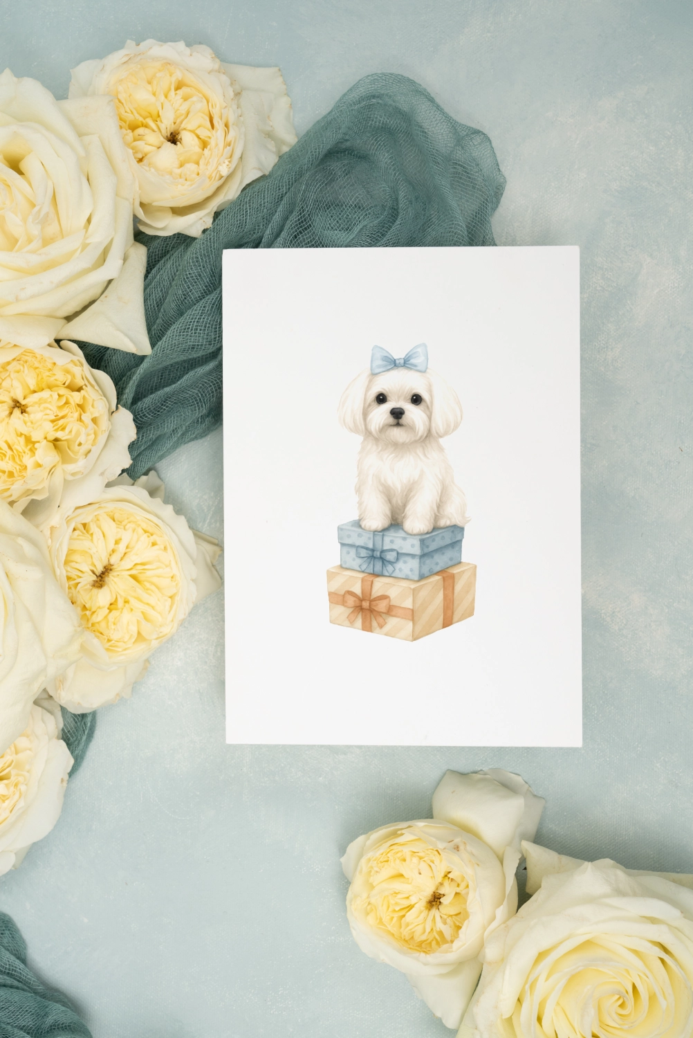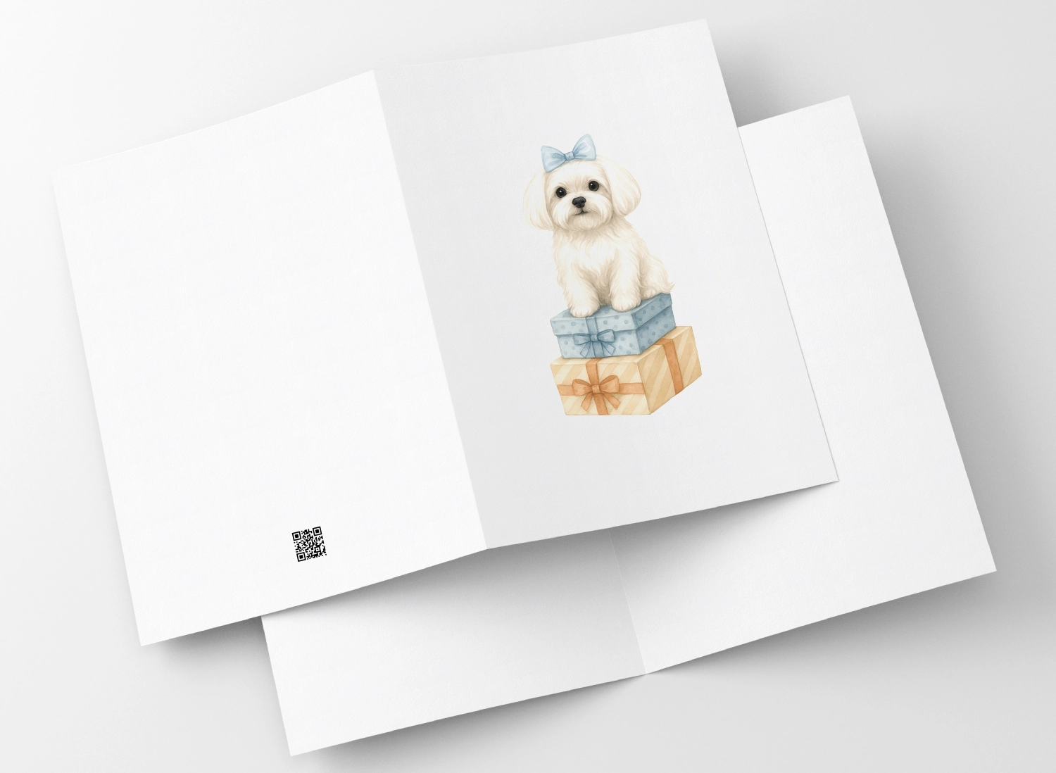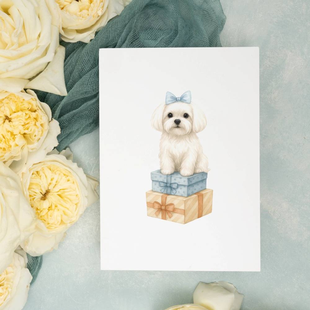 Kartka urodzinowa z pieskiem Maltańczykiem