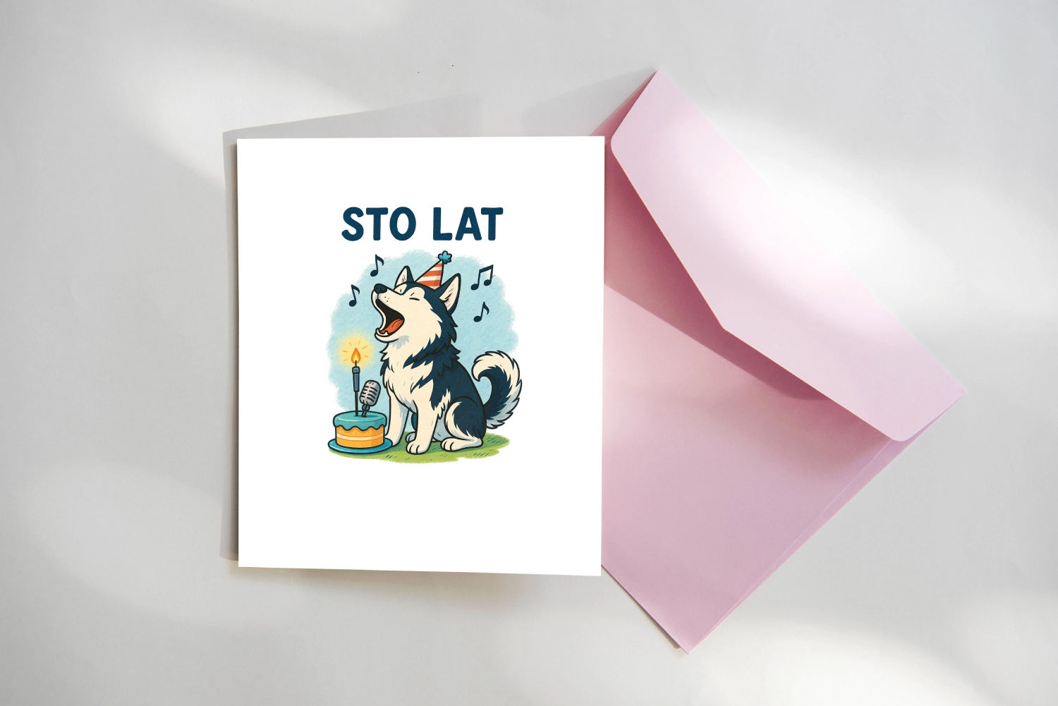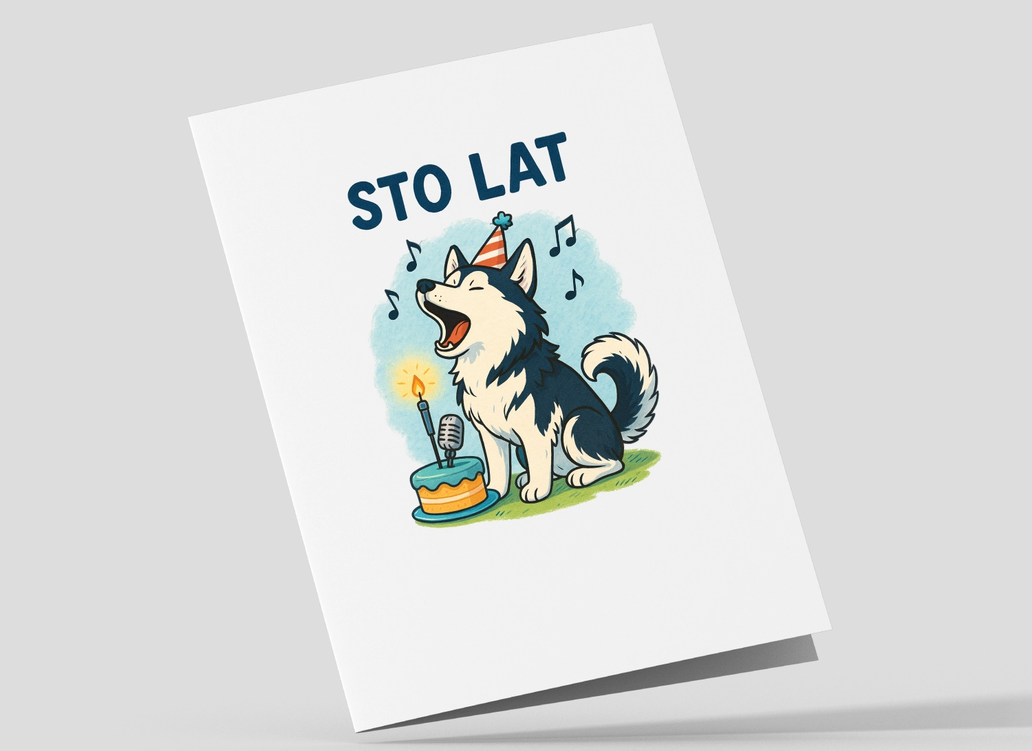 Nie każdy solenizant ma chórzystów z Mazowsza, ale akurat ten solenizant, może mieć husky, który zaśpiewa mu urodzinowe solo. Ta kartka urodzinowa pokazuje dokładnie to, co on już zna – psa, który zamiast szczekać, wyje koncertowo. I właśnie za to go kocha i z pewnością doceni, że Ty to wiesz.