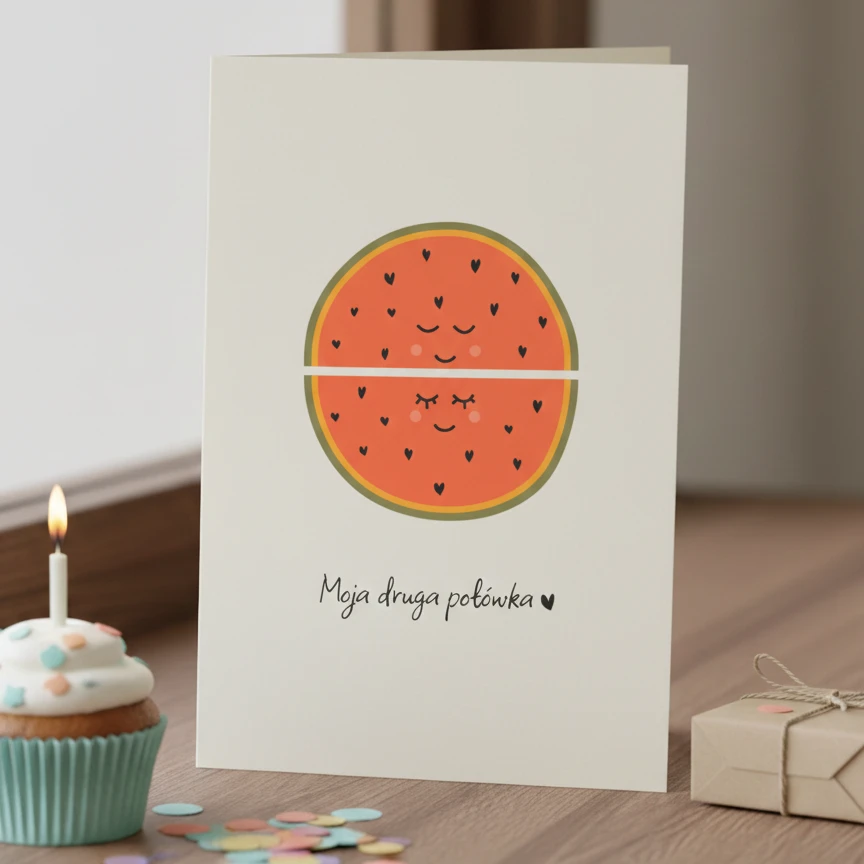 Dlaczego solenizant poczuje się doceniony? Bo ta kartka mówi: „Znam Cię, wiem, że lubisz arbuzy, i doceniam to, jak bardzo do siebie pasujemy”.