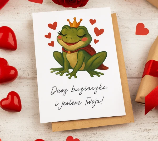 Ta kartka to idealny prezent dla partnera, który nie tylko zna bajki, ale też czasem w nie wierzy – albo przynajmniej lubi sobie żartować, że jedno „cmok” potrafi zmienić życie. Jeżeli Wasza relacja ma w sobie coś z opowieści o zaczarowanych pocałunkach, przeznaczonych spotkaniach i szczęśliwych zakończeniach, to ta ilustracja trafi w punkt.