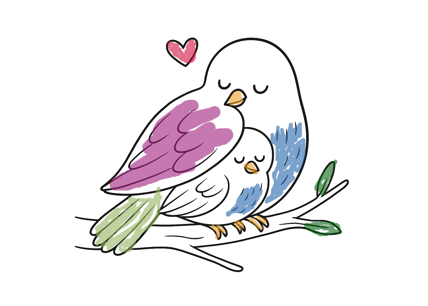 Kolorowanka z przytulonymi ptaszkami – dla dzieci od 3 do 6 lat