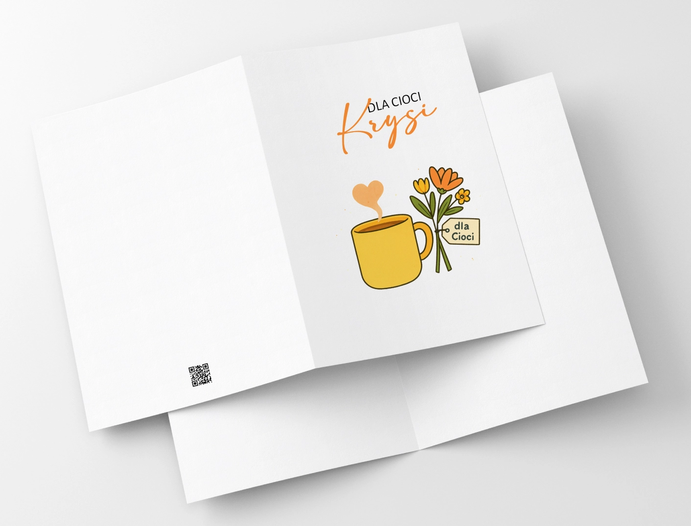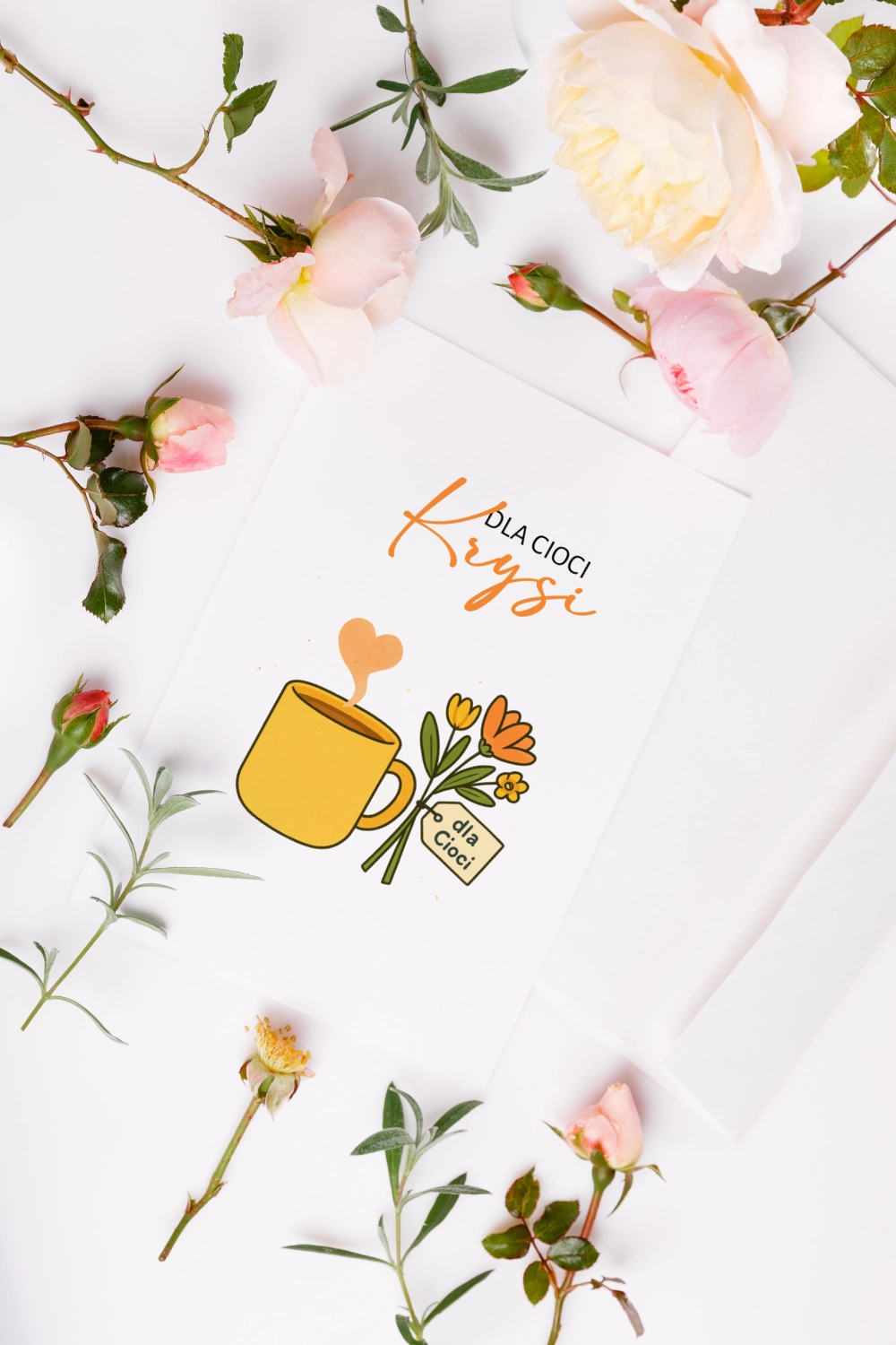 Ciocia Krysia to ta, co zna wszystkie przepisy, wszystkie sekrety rodzinne i wszystkie Twoje daty urodzin. A skoro dziś jej dzień, wypada to uczcić czymś wyjątkowym. Na przykład laurką z żółtym kubkiem i bukiecikiem, bo wiadomo: kawa + kwiaty = najlepsze imieniny.