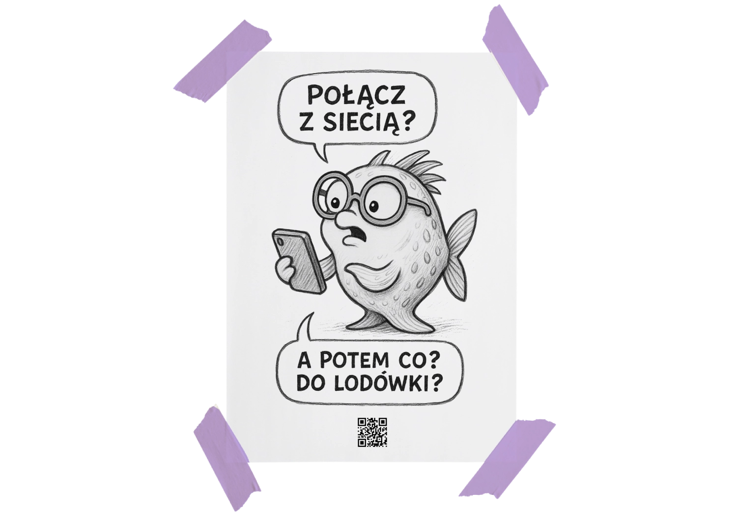 Plakat A4 – „Połącz z siecią?” Rybka wie, co mówi