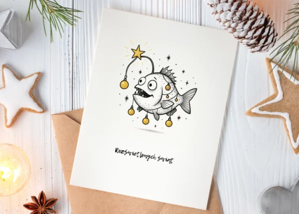 Ten stworek wygląda jakby za chwilę miał powiedzieć: „Hej, nie jestem dziwny… jestem świątecznie wykwalifikowany.” Ta ryba kocha święta w ten sposób, w jaki kocha się coś, czego się do końca nie rozumie – z dzikim entuzjazmem i pełnym przekonaniem, że błyszczące = dobre.